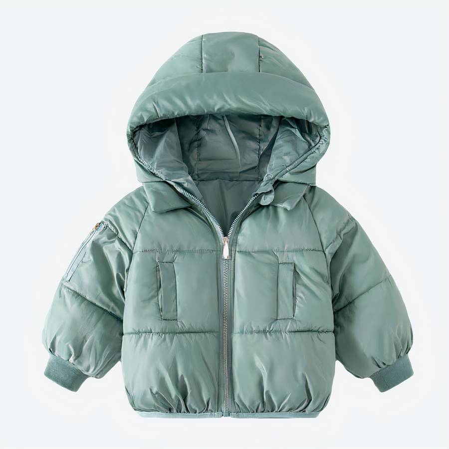 Cette doudoune bébé garçon verte rembourrée est parfaite pour le garder au chaud et à l’aise. Elle est faite d’un tissu extérieur durable et imperméable qui protège contre les intempéries, tandis que sa doublure en molleton doux et moelleux offre une chaleur supplémentaire. La capuche est amovible pour plus de praticité.