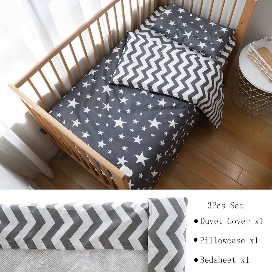 Pour compléter l’accessoire de lit de votre enfant, nous vous proposons cet ensemble de literie 3 pièces pour bébés. L’ensemble est constitué d’une taie d’oreiller, d’une housse de couette et d’un drap de lit à joli motif. Cet ensemble de literies est disponible en plusieurs couleurs. Facile à entretenir, cet ensemble de literie 3 pièces pour bébés sera un excellent choix pour offrir à votre petit un sommeil paisible et reposant.