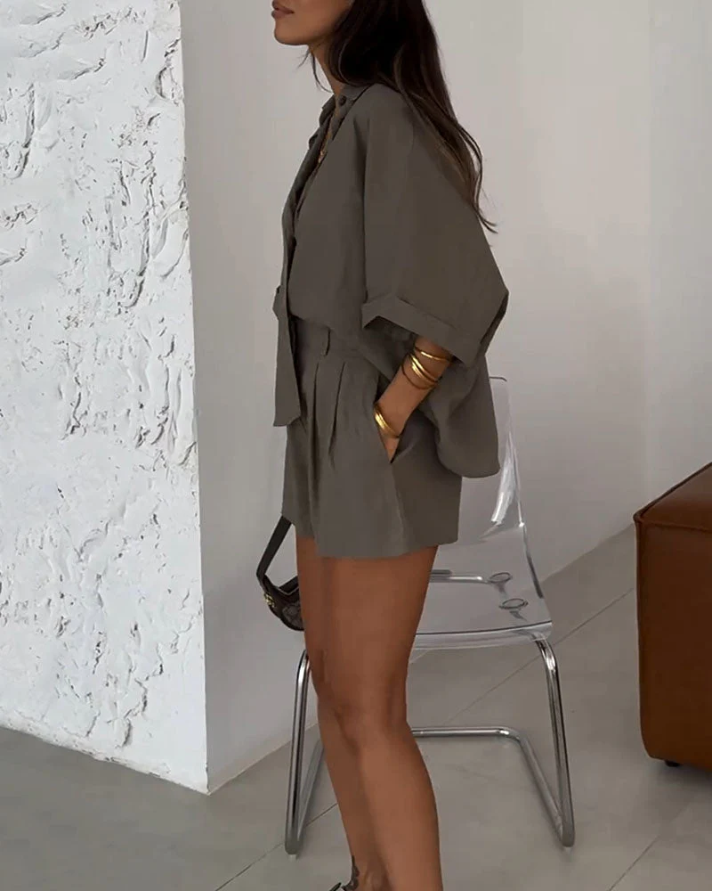 Ensemble décontracté deux pièces pour femme – chemise manches courtes et short, léger, respirant, coupe décontractée pour vacances