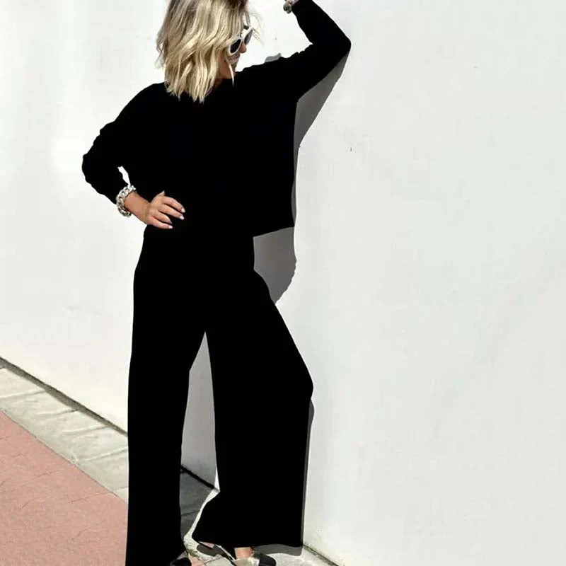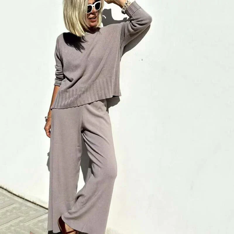 Ensemble deux pièces en tricot pour femme – Pull élégant et pantalon assorti