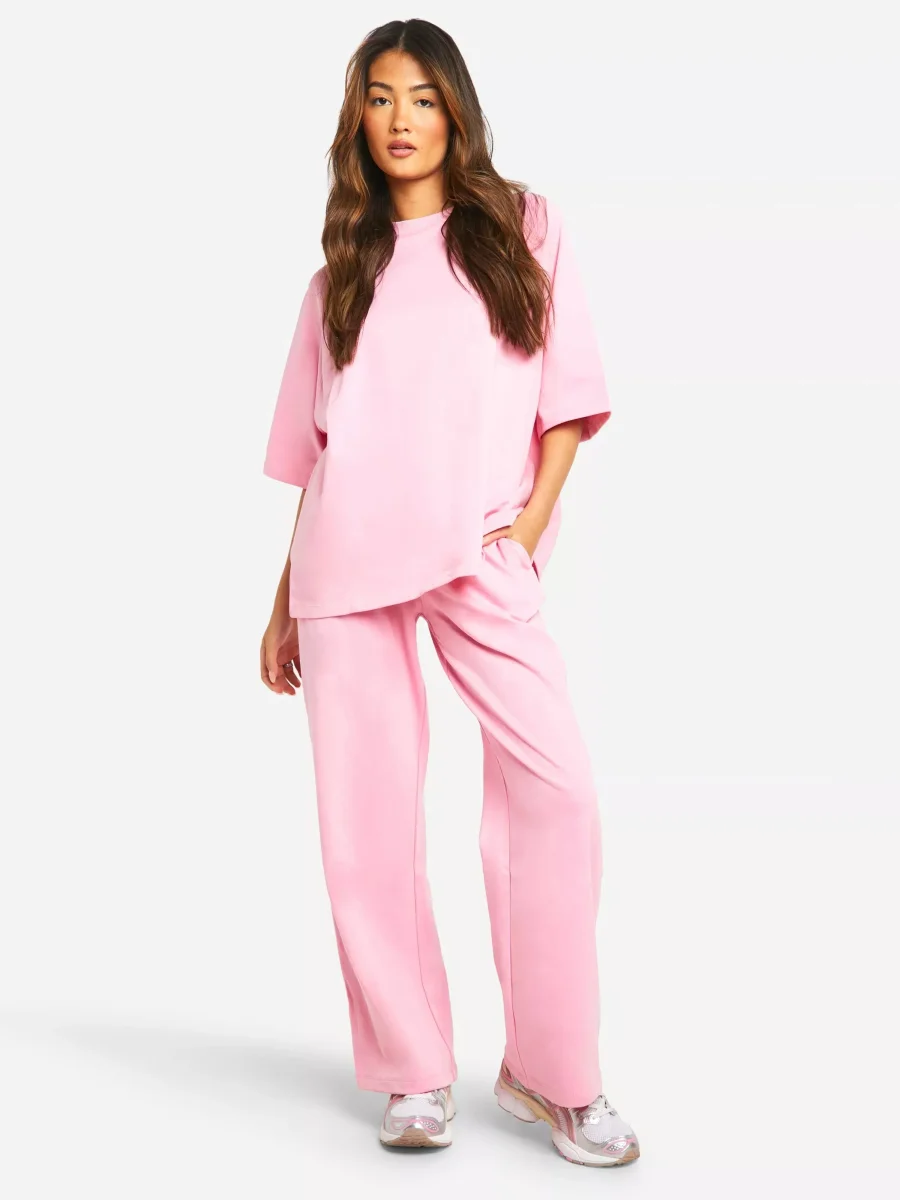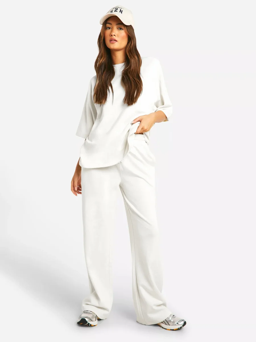 Ensemble T-Shirt Col Haut et Jogging Droit pour Femme – Coupe Oversize Décontractée d’Été