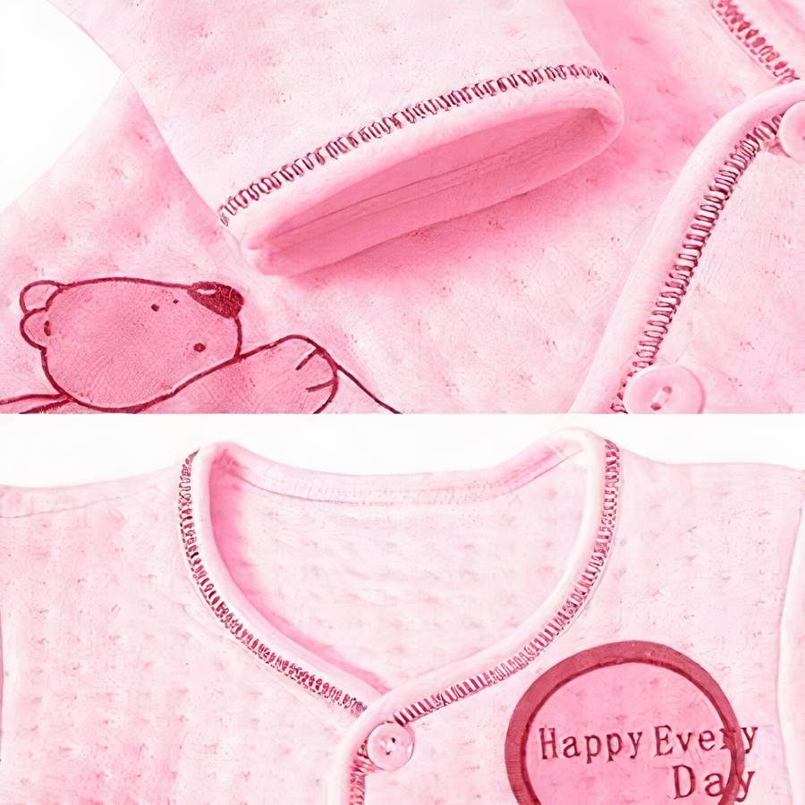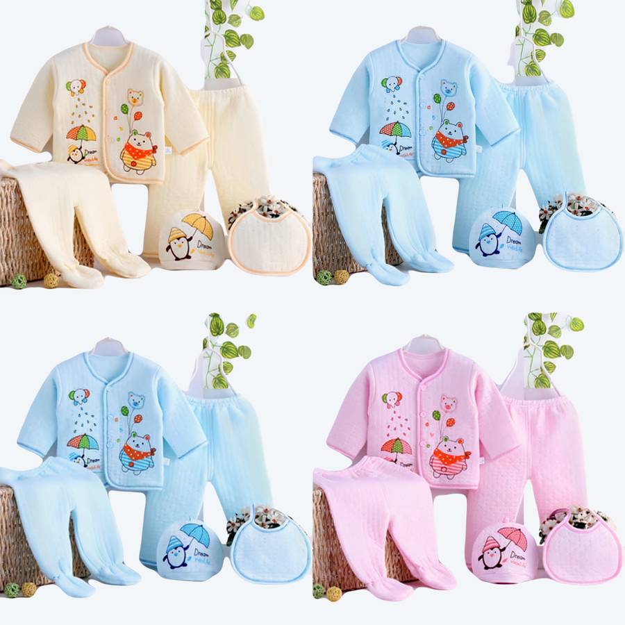 Optez pour cet ensemble de vêtement en coton doux pour bébé. L’ensemble est doté d’un petit costume mignon, deux pantalons, un bonnet et un petit bavoir. Le haut a une jolie couleur crème avec un joli motif d’ours et de pingouin. Le bonnet est également avec un beau motif. Cet ensemble est parfait pour tout bébé ! Il est si confortable et mignon que votre bébé va l’adorer !