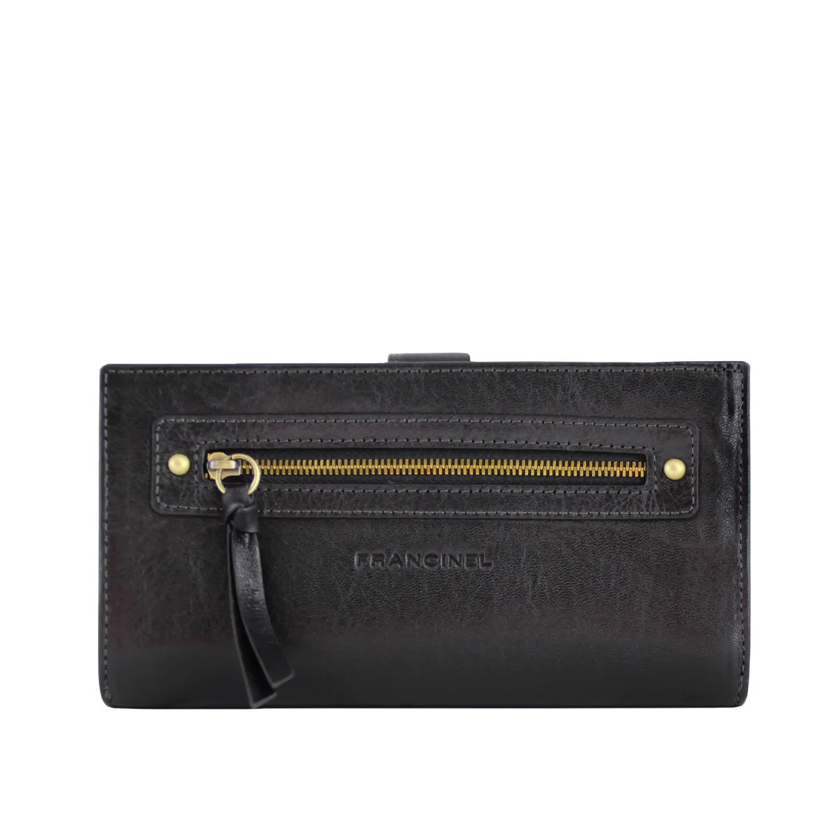 Avec un design chic et intemporel, notre ligne Flavie vous propose des accessoires en cuir de vachette collet souple, ils sont vraiment parfaits pour le quotidien. Détails : fermeture bouton à pression fentes pour cartes porte-chéquier compartiments pour billets et papiers Dimensions : 19 x 10 x 2,5 cm Disponible en noir, marron et rouge. […]