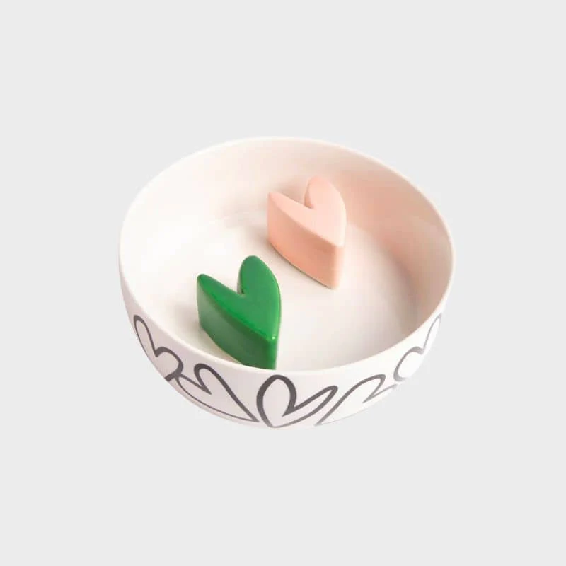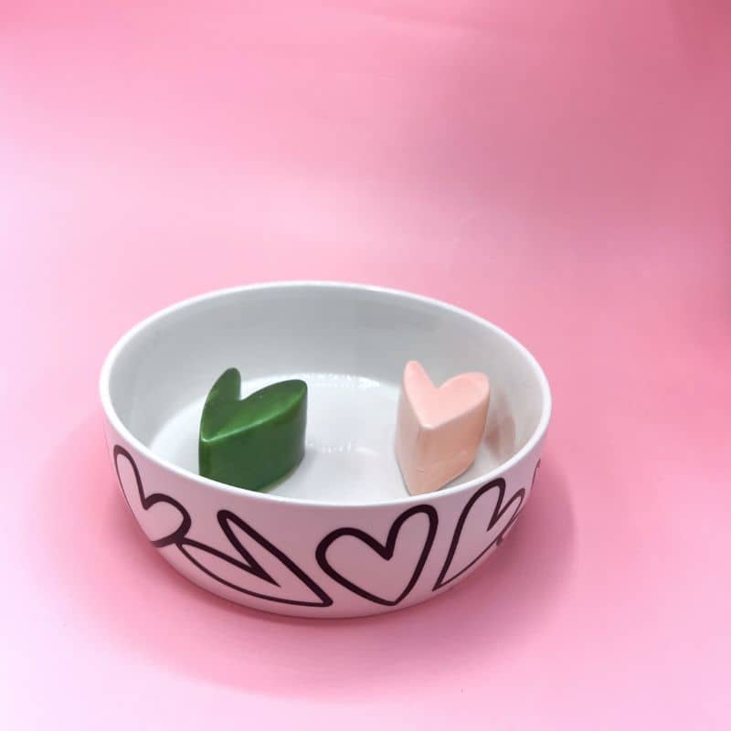 • Gamelle en céramique avec 2 coeurs en relief, peinte à la main