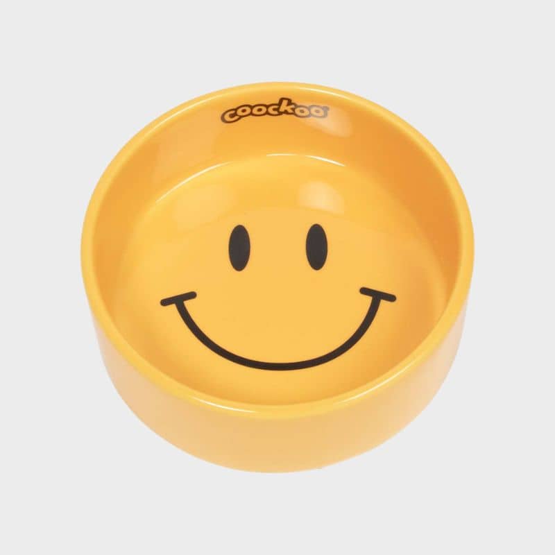 Cette gamelle en céramique motif Smiley jaune 🙂 de Coockoo est parfaite pour les adeptes de déco maximaliste et de la tendance dopamine.