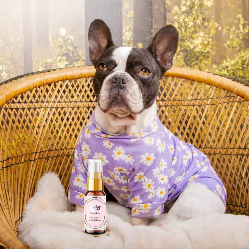 Dexter & Mango est une marque française créée par Swann, la maîtresse de… Dexter et Mango ! Pour résumer, Mango, comme beaucoup de boubous, a cumulé les soucis de santé dont des problèmes dermato. C’est comme ça que l’idée est née avant de voir le jour en 2018.
