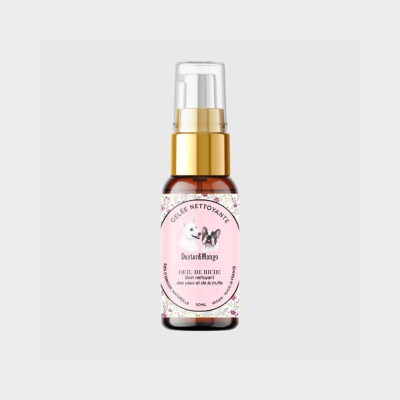 La gelée nettoyante Oeil de biche de Dexter & Mango permet un nettoyage des yeux et de la truffe tout en douceur, sans risque de brûlure tout en apaisant les irritations des yeux sensibles grâce à sa formulation sans paraben, sans sulfate, sans silicone et sans parfum de synthèse. Elle aide également à éliminer les tâches brunes des yeux larmoyants. Elle convient aux yeux sensibles de tous types de chiens.