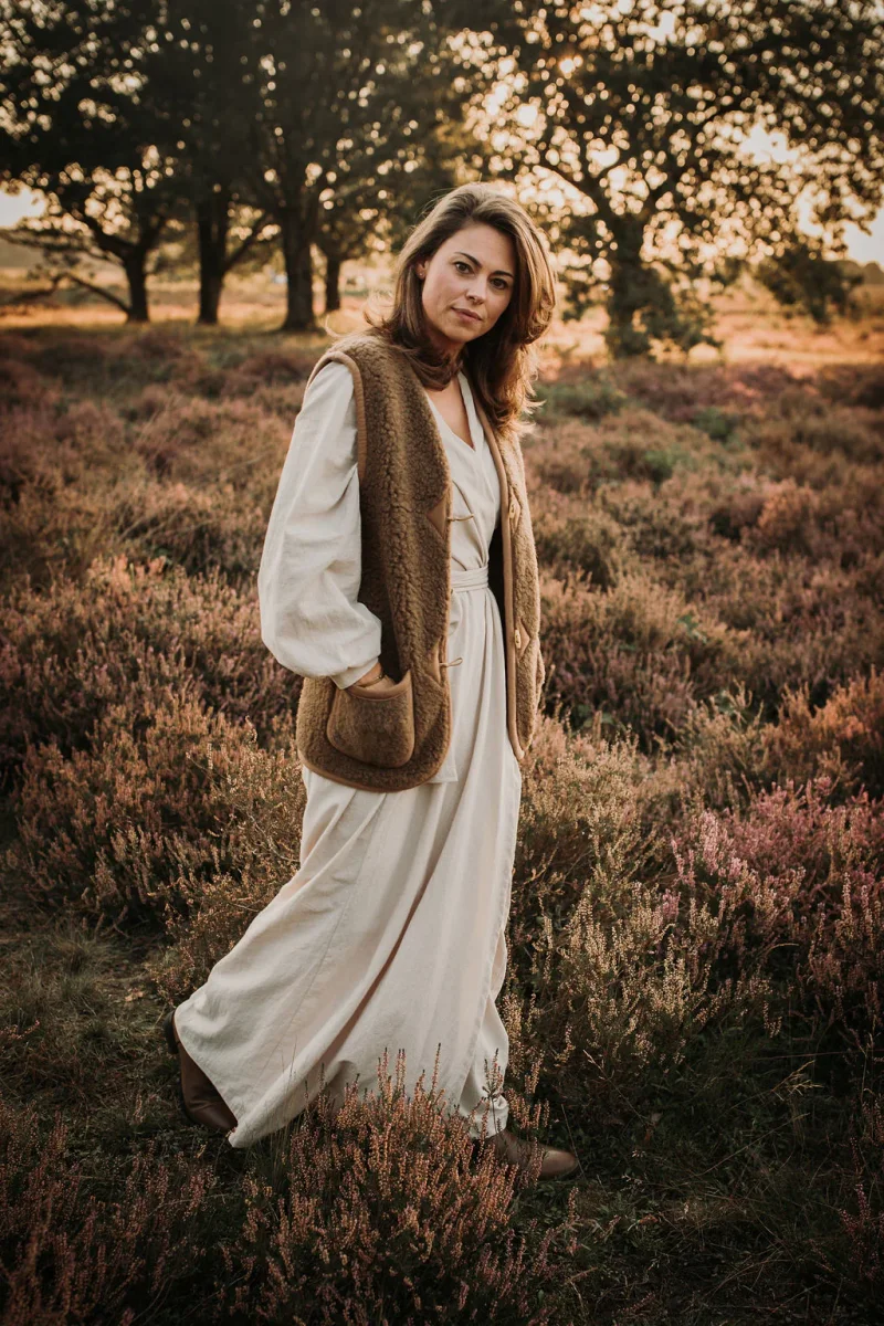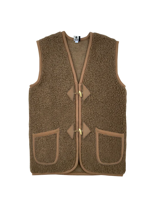 Gilet Adulte polaire marron chocolat sans manches avec bords contrastants marrons claires, agréablement doux et bien chaud car en 100% laine. Ce gilet aux couleurs naturelles pourra se porter facilement sur tout : comme par exemple au dessus d’un gros pull ou une robe.