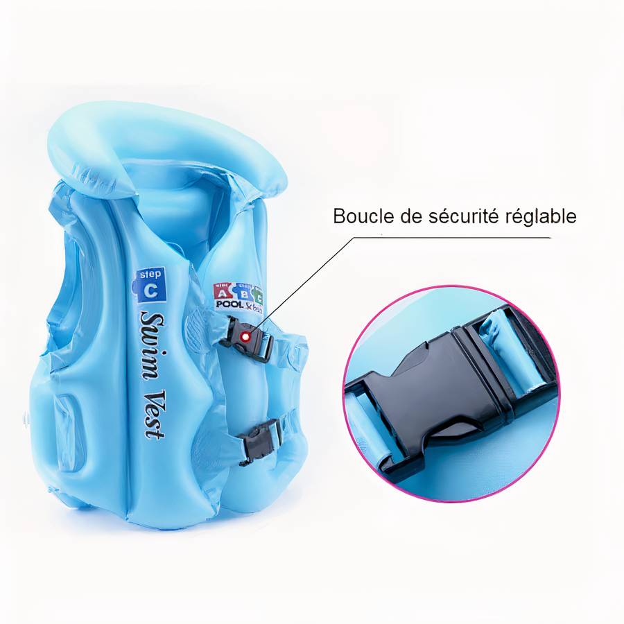 Ce gilet de natation gonflable pour enfants est conçu pour aider à faciliter la survie des enfants qui jouent dans l’eau. Ce gilet est conçu avec une couche extérieure colorée, résistante et durable, tandis qu’en flottant, le porteur sera en sécurité et sentira l’apesanteur. Ce sont des gilets gonflables pour les bébés dès l’âge de 6 mois.