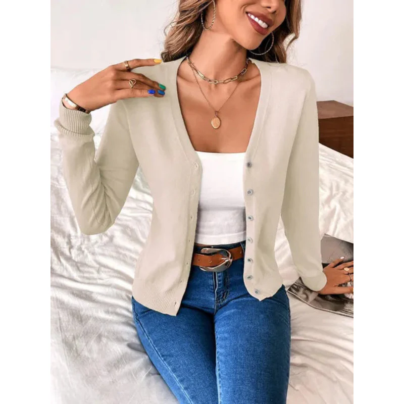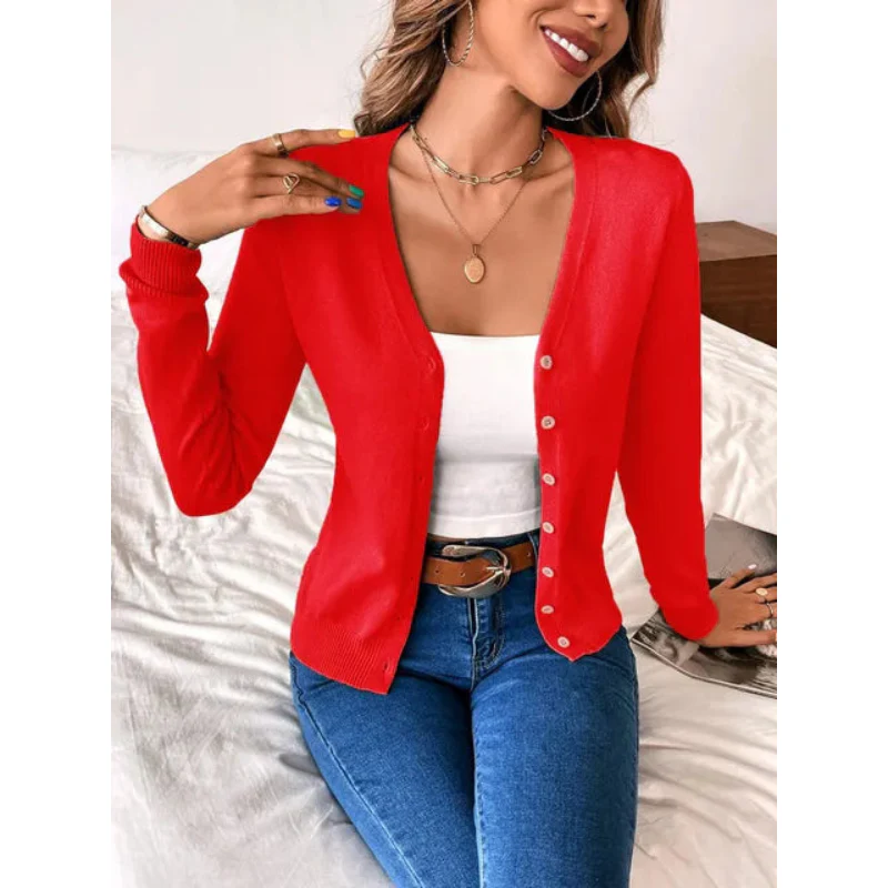 Ce gilet à col V ajusté allie élégance et confort, faisant de lui un essentiel de garde-robe adapté à toutes les saisons. Sa coupe flatteuse met en valeur la silhouette sans restreindre les mouvements, tandis que la fermeture boutonnée apporte à la fois style et praticité. Parfait pour être superposé, il passe sans effort d’un look de bureau à une tenue décontractée de week-end. Le tricot combine douceur et structure pour offrir une pièce agréable à porter et élégante. Un basique raffiné qui s’adapte à toutes les occasions et qui vous garde confiante jour après jour.
