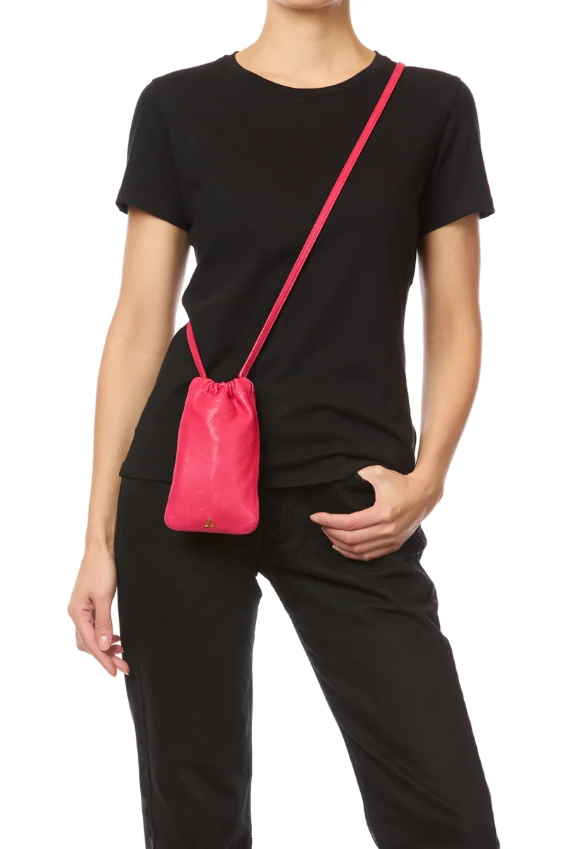 Etui mobile souple avec fine bandoulière en cuir. Longueur bandoulière 117 cm