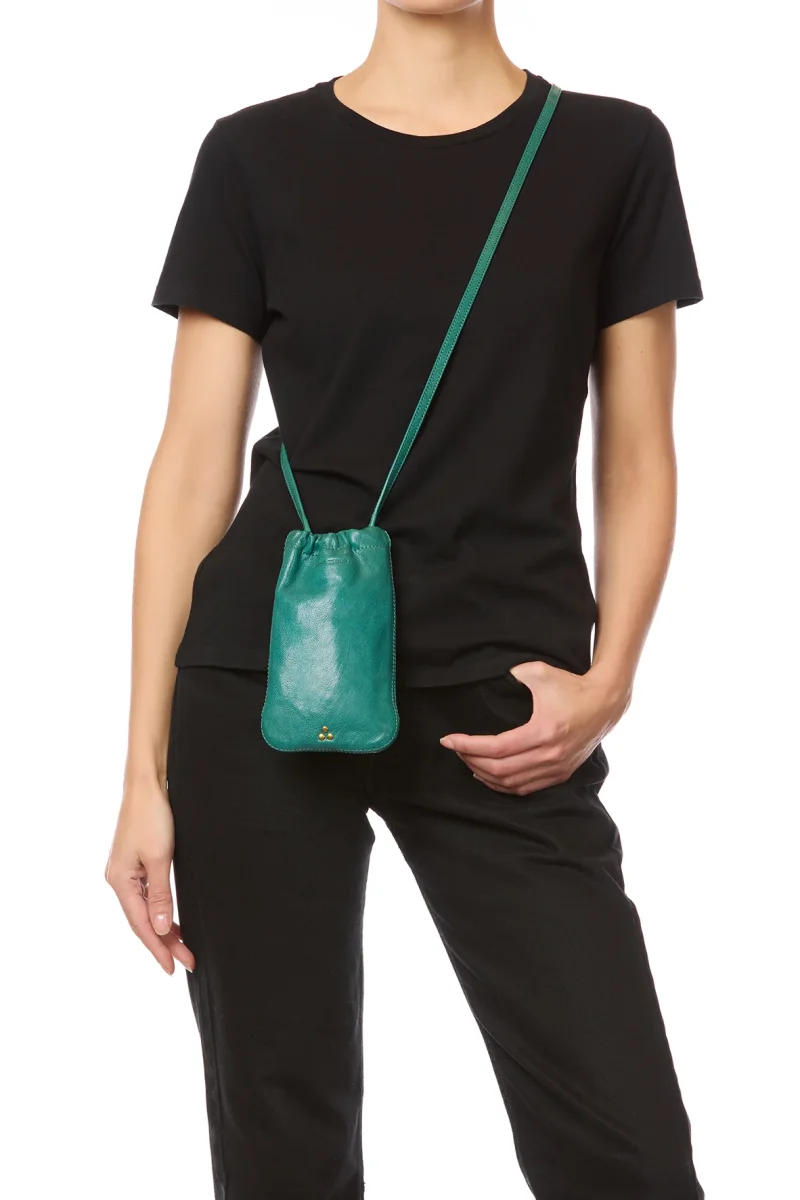Etui mobile souple avec fine bandoulière en cuir. Longueur bandoulière 117 cm