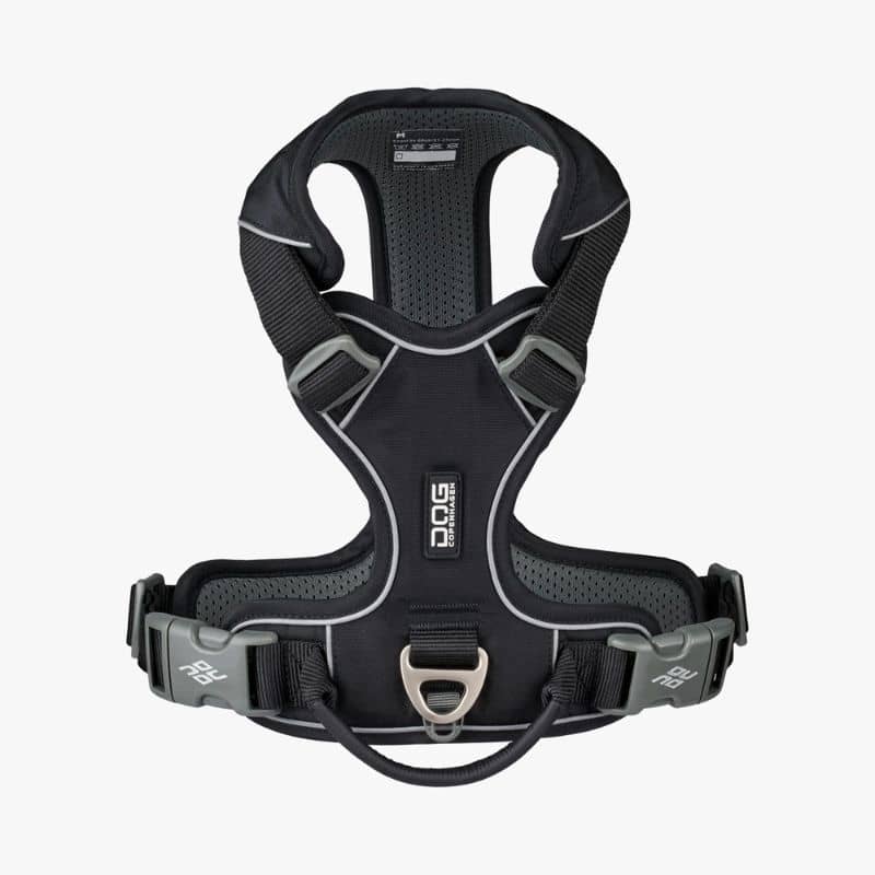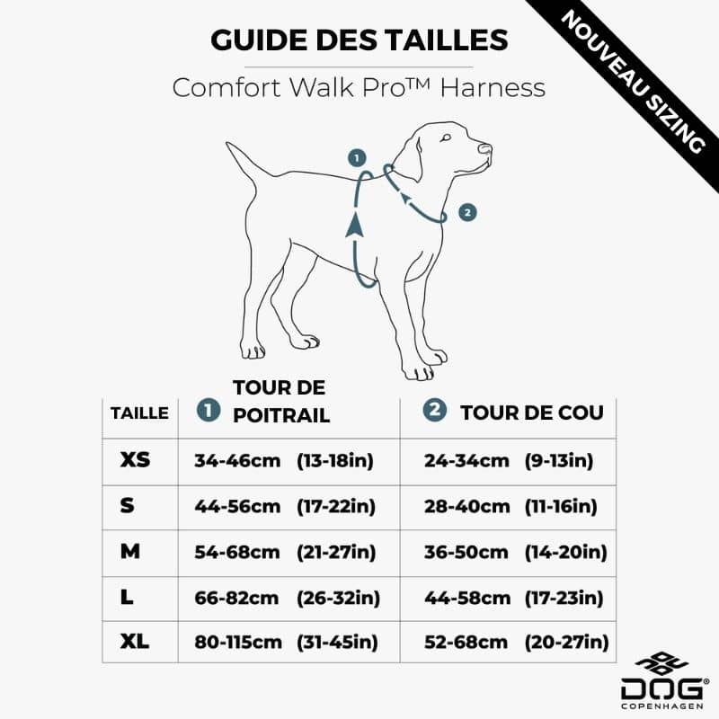 Nouveau design pour le harnais Comfort Walk Pro™ noir de Dog Copenhagen, un harnais pour chien à la fois léger et solide, fabriqué dans des matériaux résistants à l’usure, aux salissures et à l’eau.