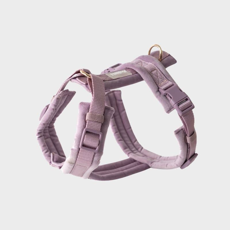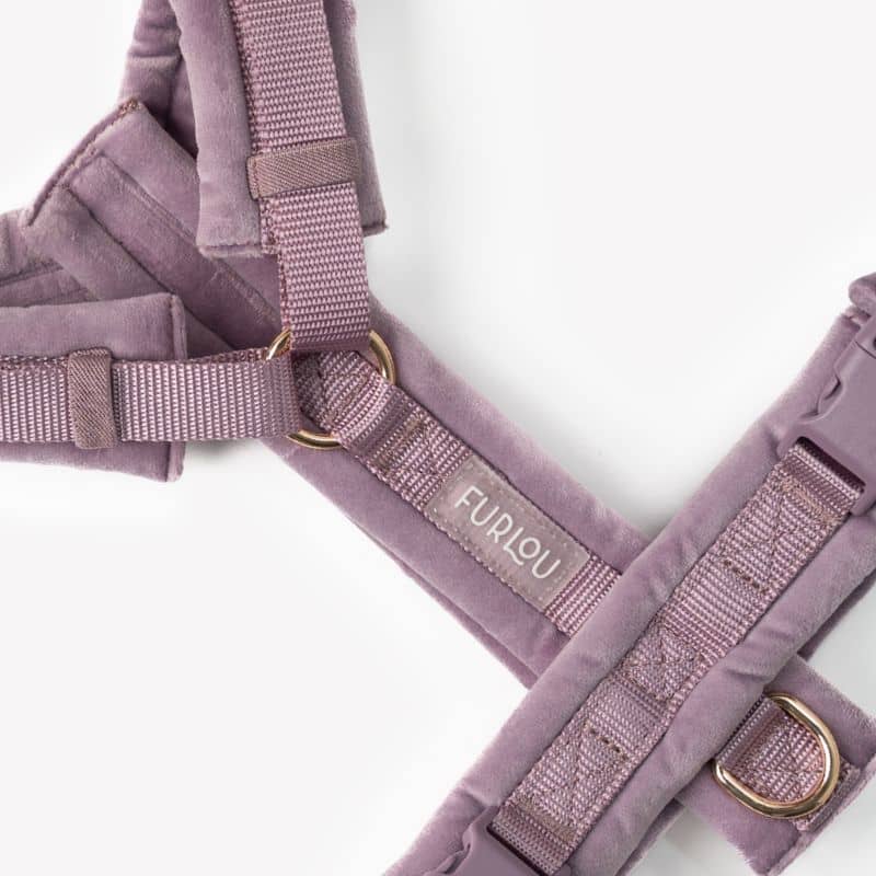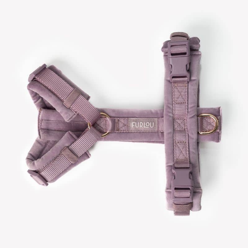 Hyper tendance et confortable, le harnais en velours en H pour chien Mauve Parme « Lilac Velvet » de la marque Furlou va très vite devenir l’accessoire préféré de votre animal de compagnie.