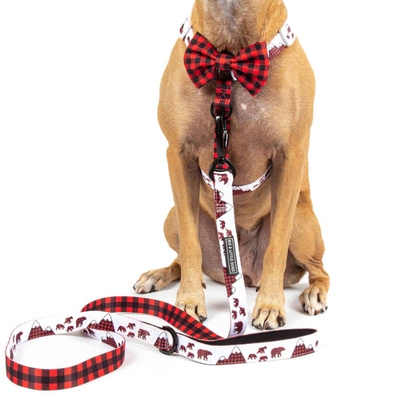 HARNAIS POUR CHIEN STRAP AVEC NOEUD PAPILLON – TARTAN ET MONTAGNE ⛰️🐻