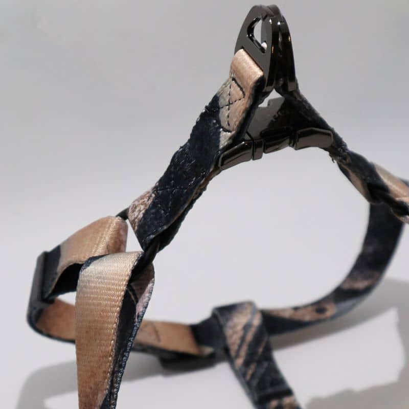 HARNAIS AJUSTABLE POUR CHIEN FOURRURE – MOTIF TARTAN BEIGE & NOIR