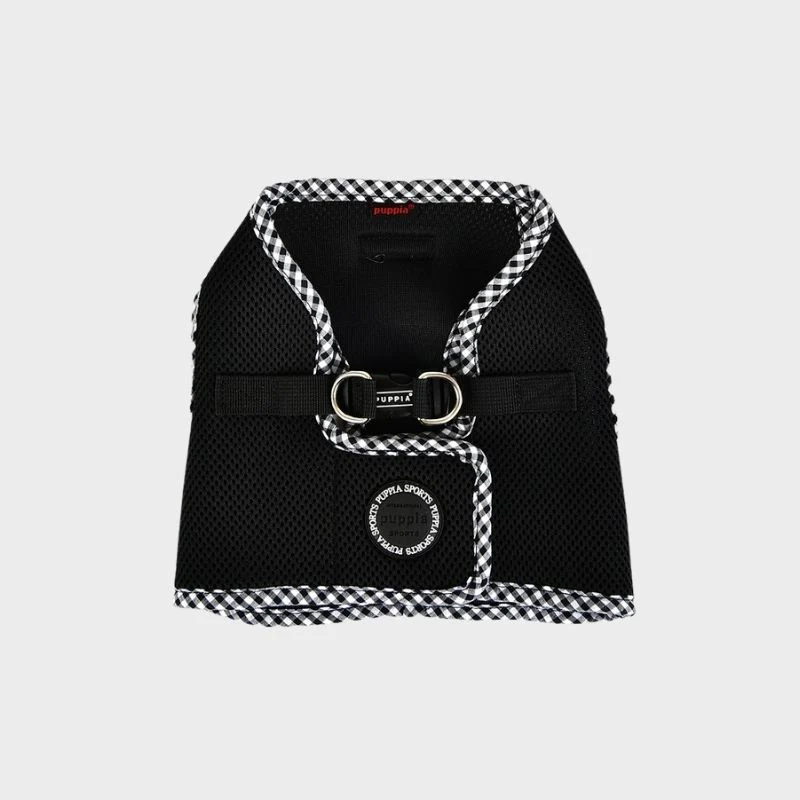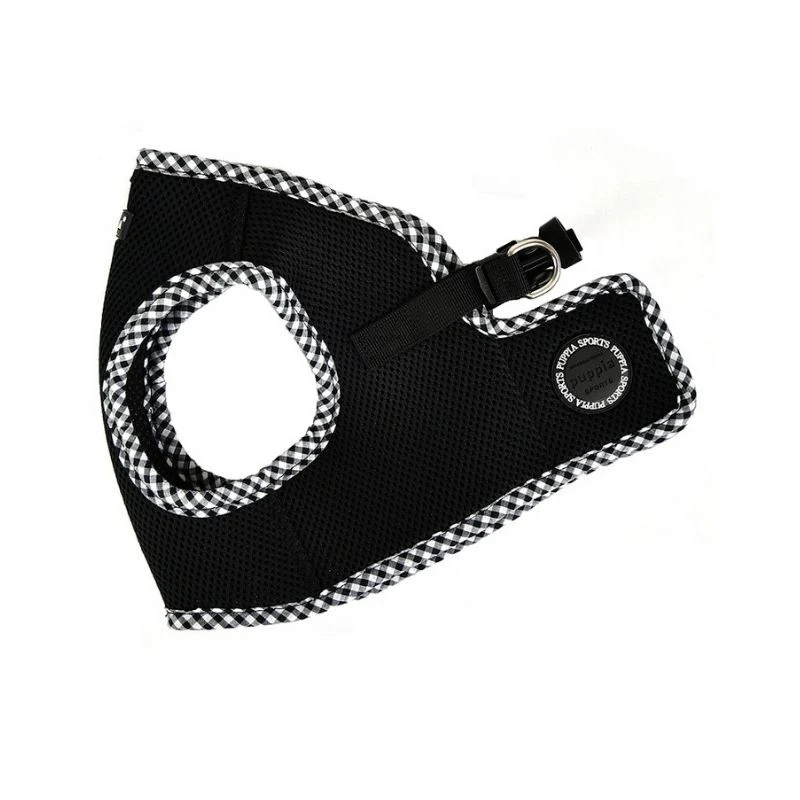 Parfait en toute saison mais surtout très pratique, vous allez craquer pour le harnais veste de Puppia en noir avec sa bordure vichy.