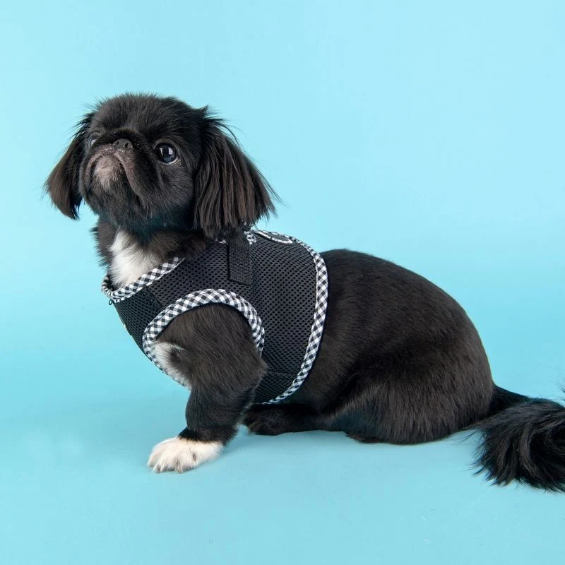 HARNAIS VESTE POUR CHIEN ET CHAT – NOIR BORDURE VICHY