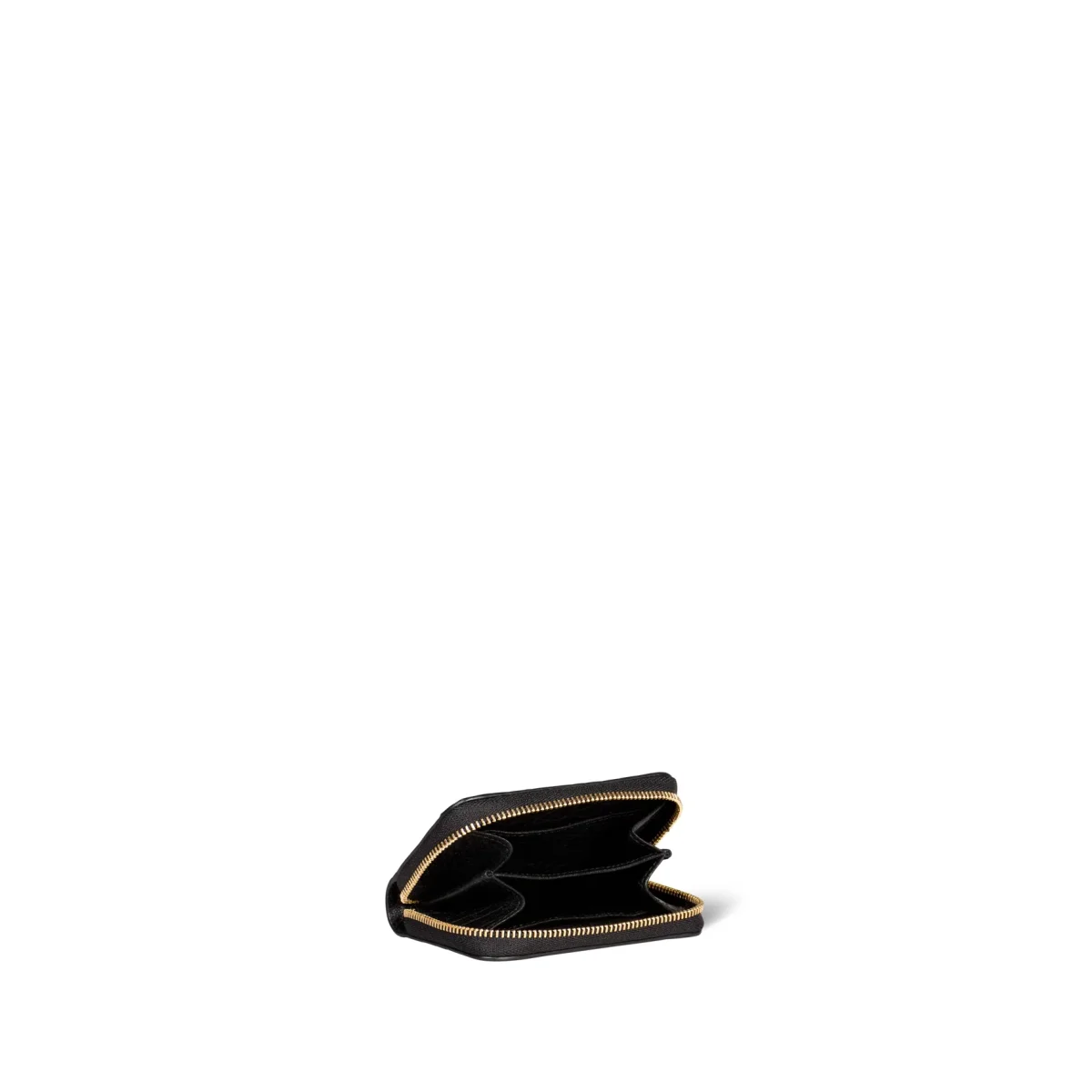 Fermeture entièrement zippée. Deux compartiments monnaie. Deux rangements cartes.