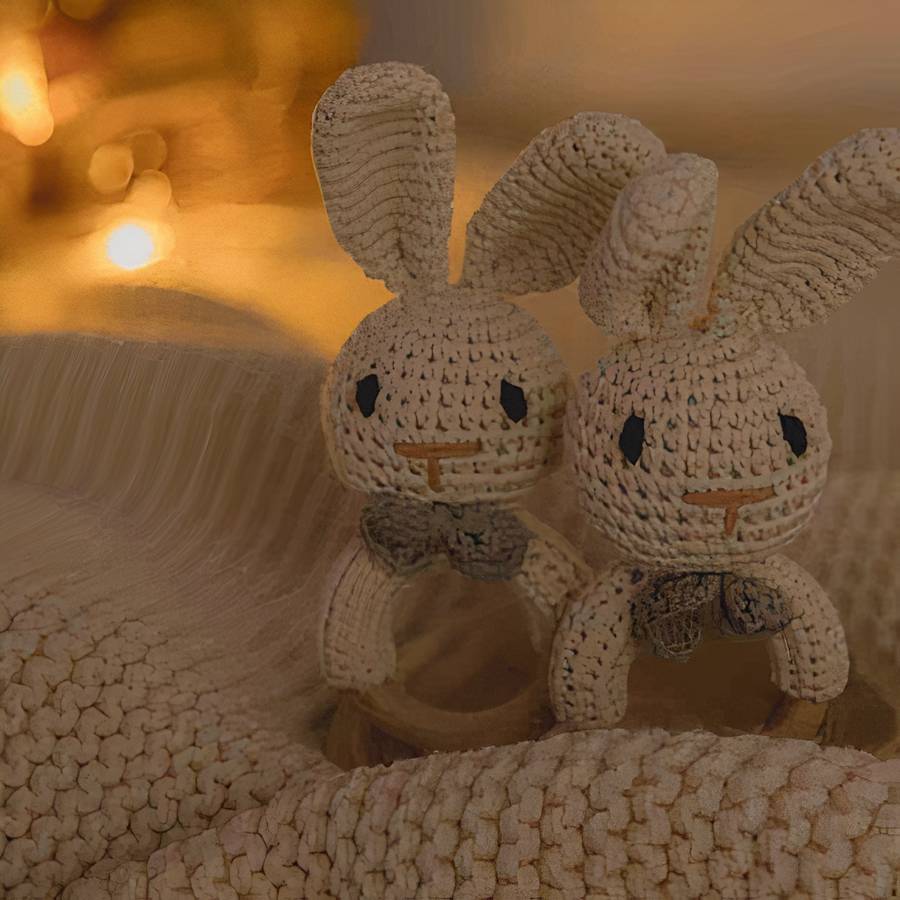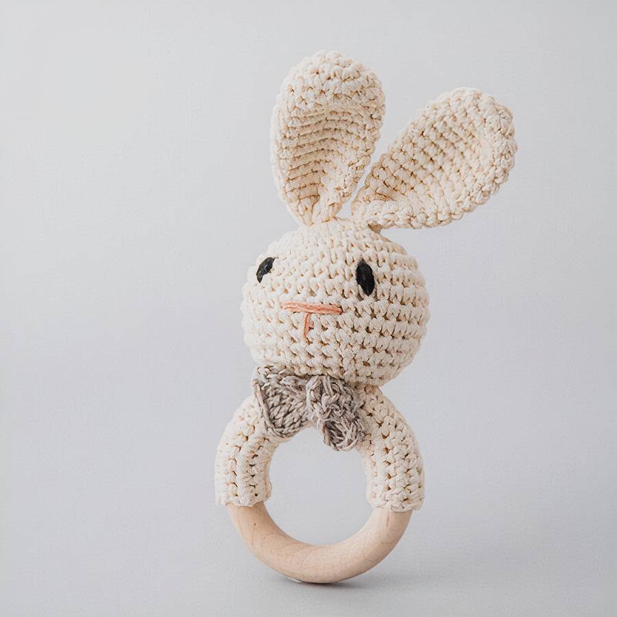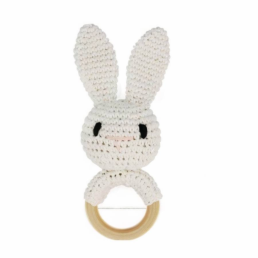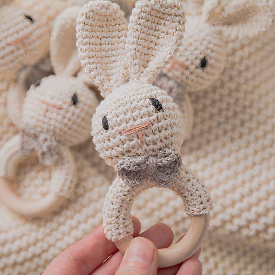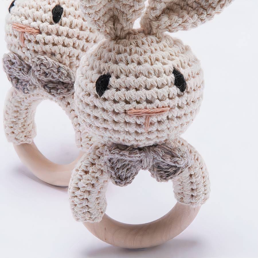 Découvrez dans notre Charmante Collection spéciale accessoires pour bébés, ce joli hochet de dentition en bois et en tissu avec sa jolie petite tête de lapin. Amusant, il permet également à votre enfant de se soulager de sa douleur.