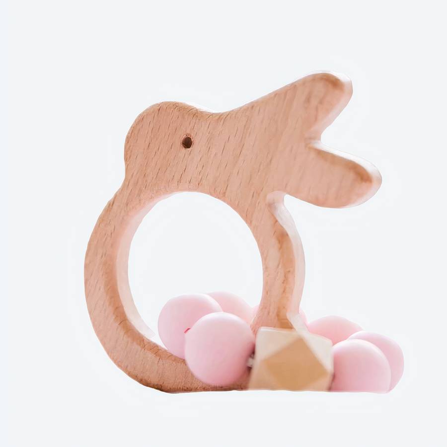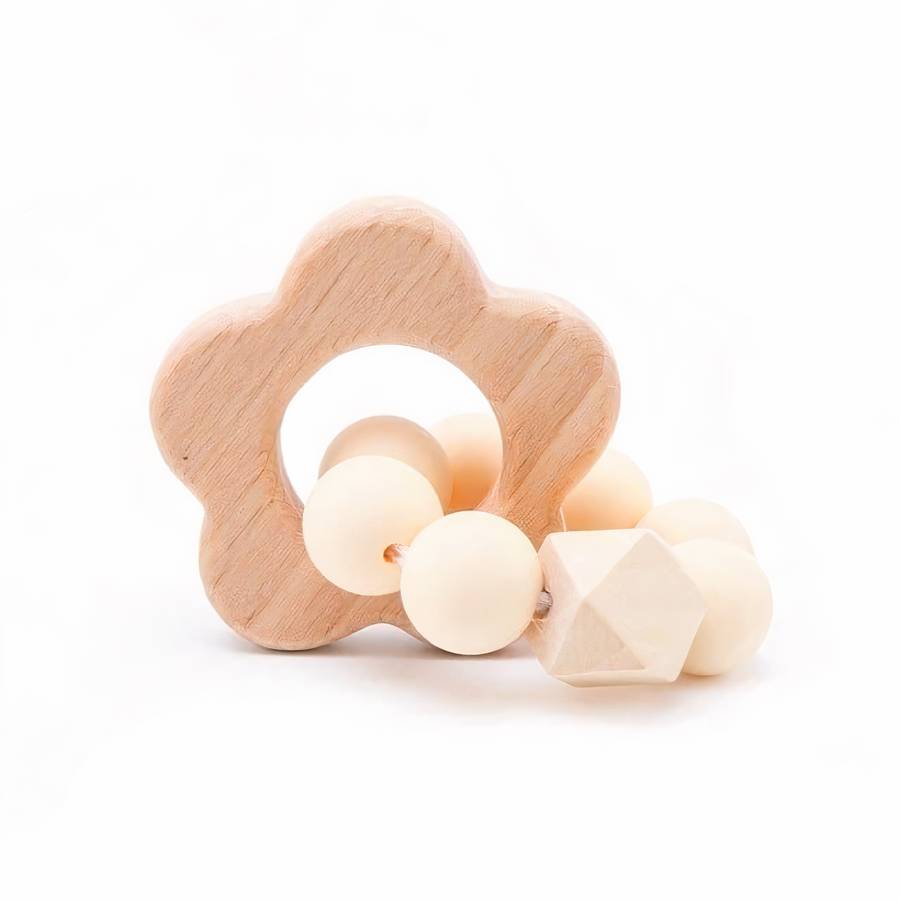 Ce hochet de dentition en bois et silicone pour bébé est parfait pour soulager les gencives douloureuses des bébés qui font leurs dents.
