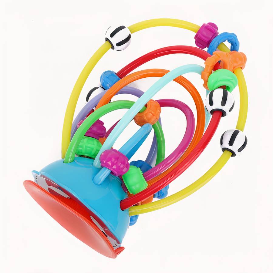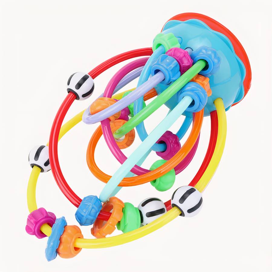 Le hochet est doté d’un anneau de dentition intégré qui permet aux bébés de le mâcher sans danger. Les couleurs vives et gaies sont conçues pour stimuler la vision et l’attention des bébés.