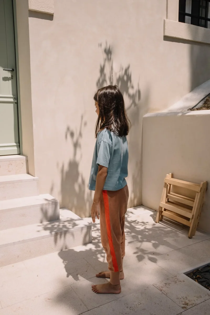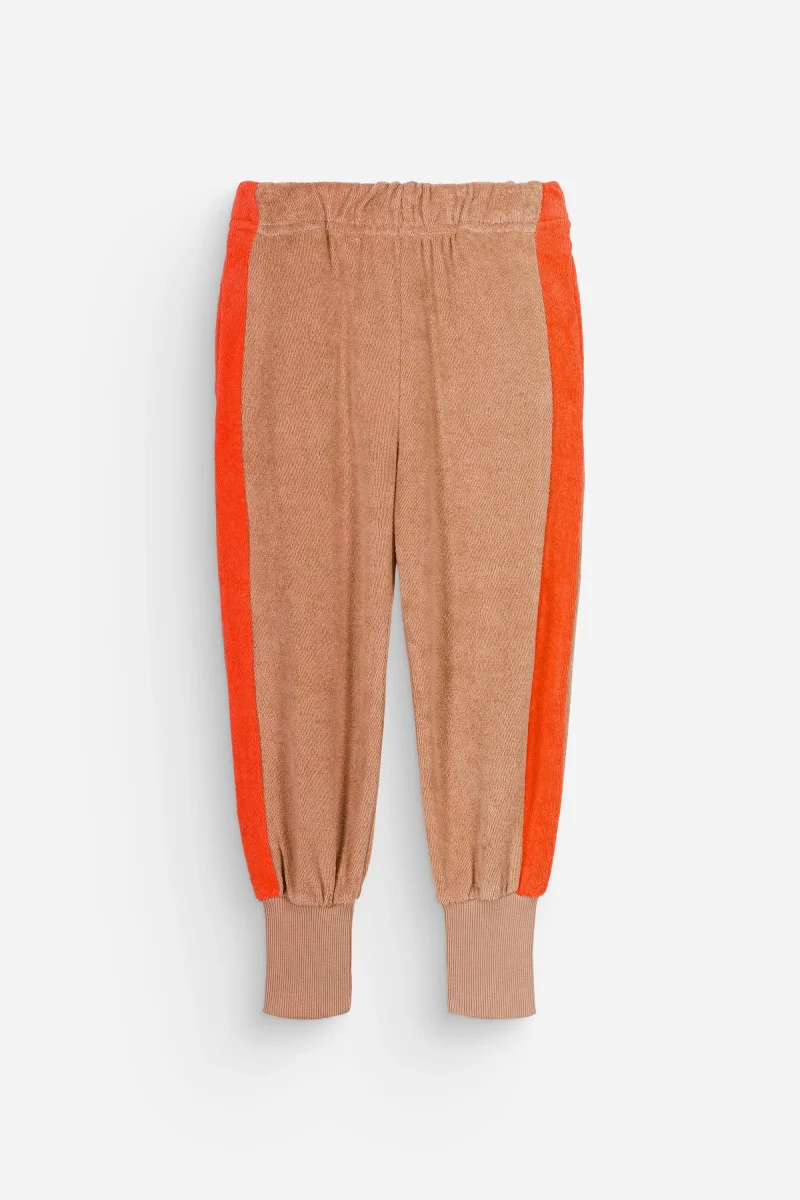 Une de nos pièces coups de cœur de cette saison ! Bas de jogging pêche avec taille élastique, resserré aux chevilles. On adore ses couleurs vitaminées et sa bande latérale orange contrastante pour un look cool et original. Matière éponge toute douce et absorbante en coton bio.