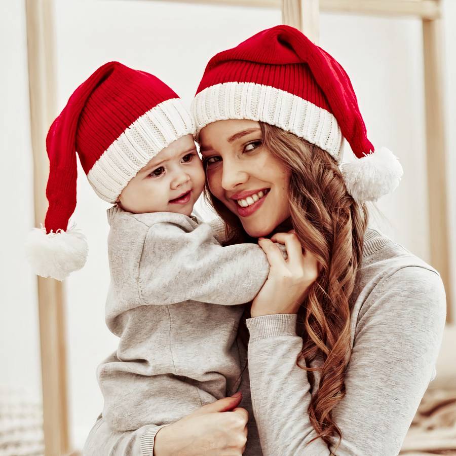 Joli Bonnet de Noël à pompon unisexe pour maman et bébé