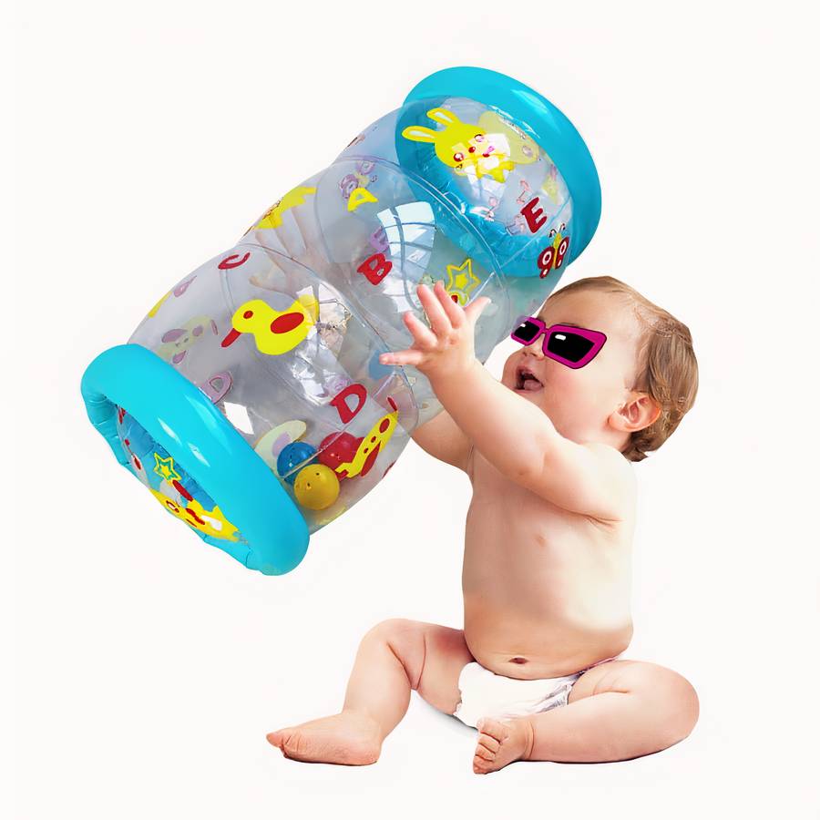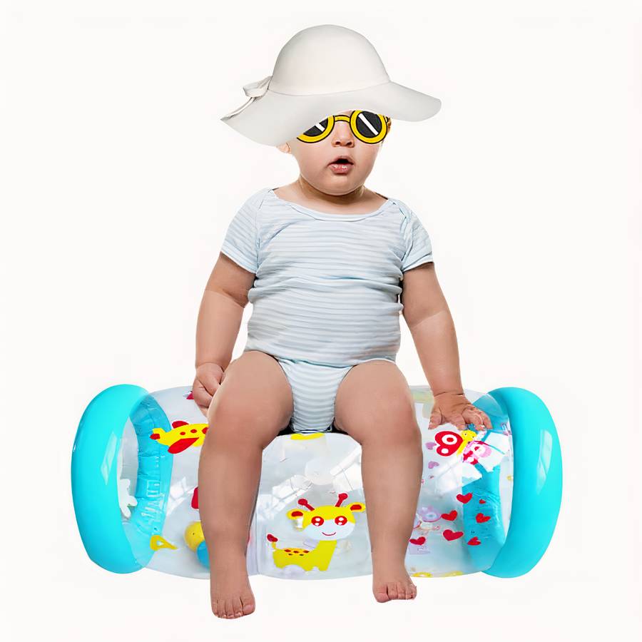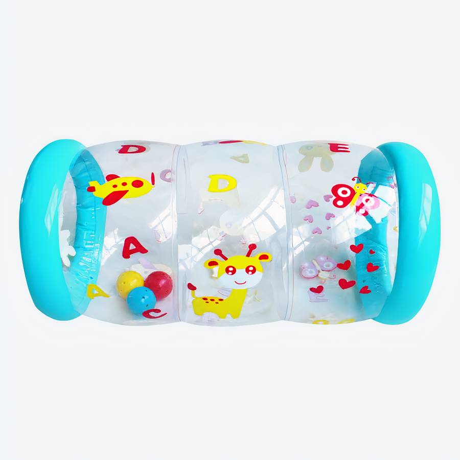 Jouet gonflable bébé rouleau bleu avec imprimés girafe et avion