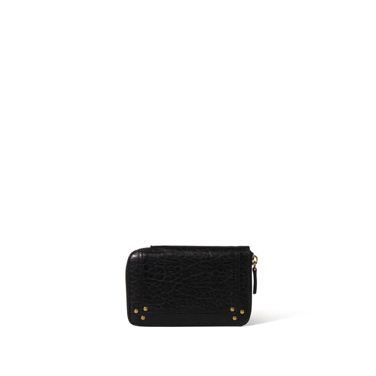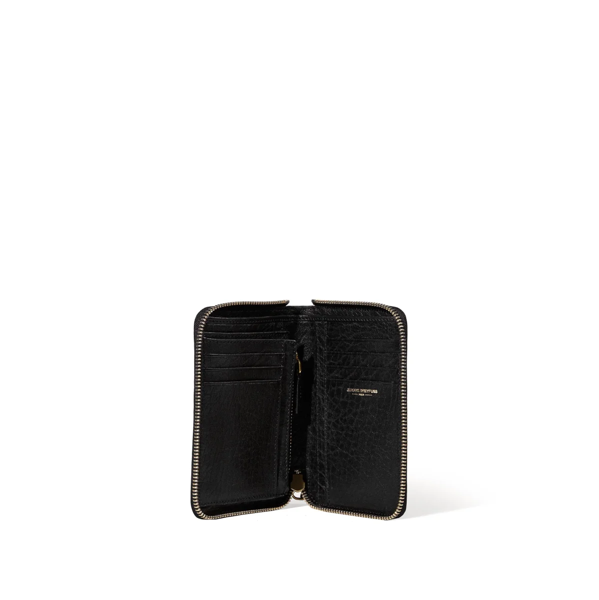 Fermeture entièrement zippée. Un compartiment monnaie zippé. Des emplacements cartes, billets, papiers d’identité.