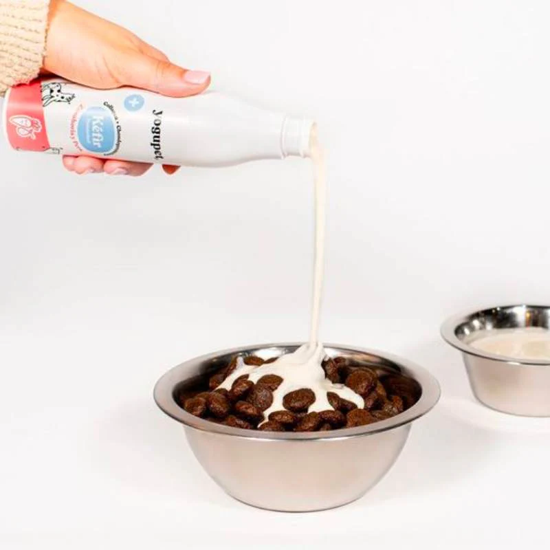 Le kéfir est une option saine et gourmande pour étaler sur un tapis de léchage ou encore pour réaliser des glaces avec les moules Smoofl ou Beg Buddy.
