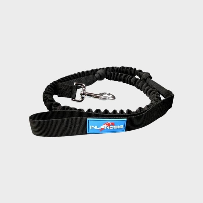 Cette laisse de canicross avec poignée crosser Inlandsis permet d’amortir les chocs de la traction lorsque vous courrez ou faites du vélo avec votre chien et ainsi rendre l’activité plus confortable à la fois pour vous et votre poilu.