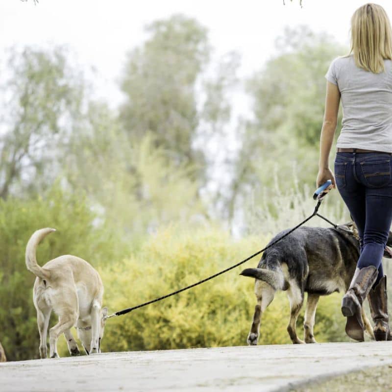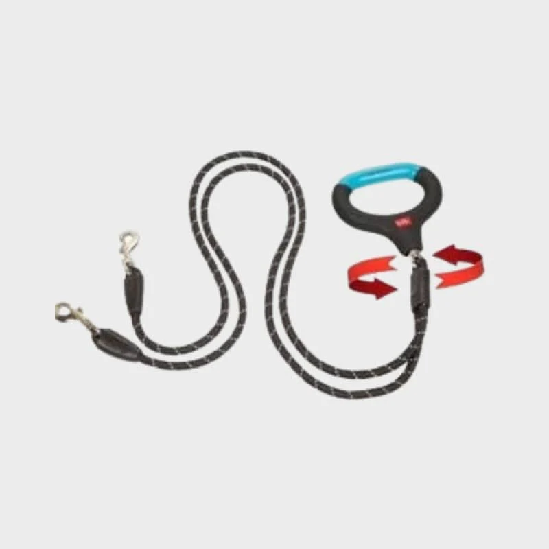 La laisse double pour chien en corde réfléchissante « Dual Doggie Rope » de Wigzi vous permet de promener deux chiens facilement, sans que les laisses ne s’emmêlent !