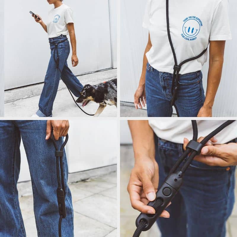 - Laisse mains-libres à utiliser en bandoulière ou autour de la taille