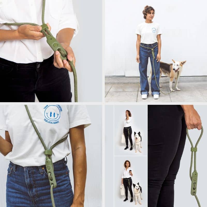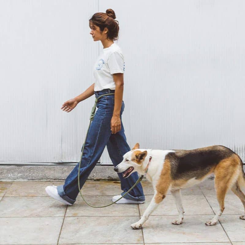 LAISSE MAINS-LIBRES POUR CHIEN – VERT KAKI