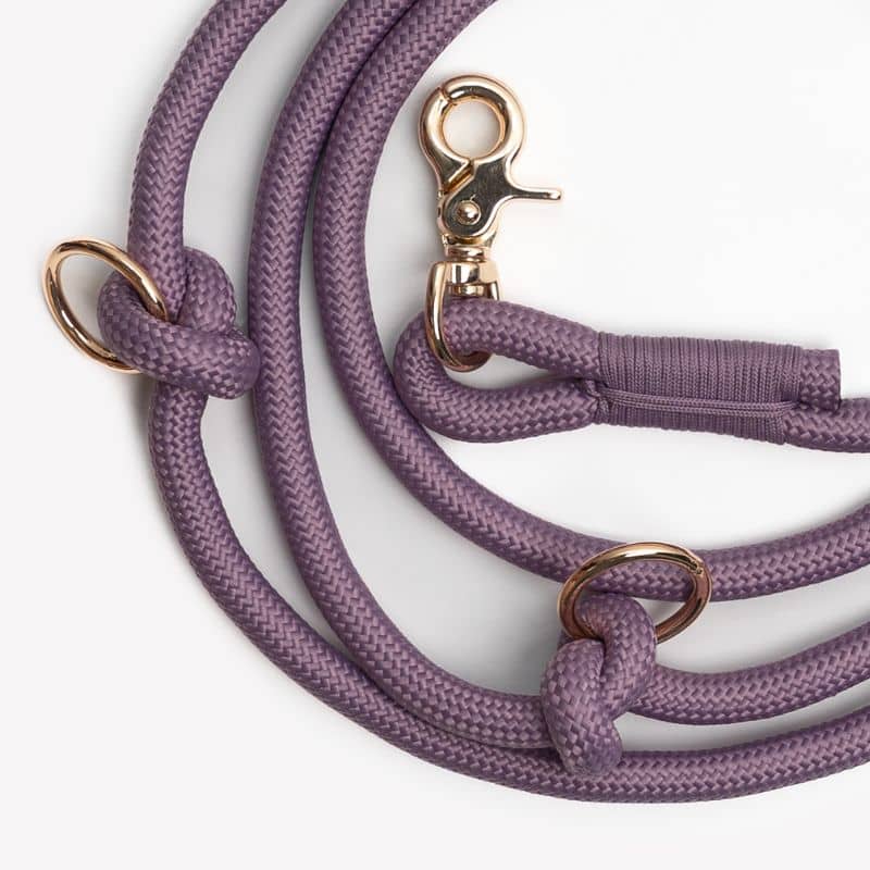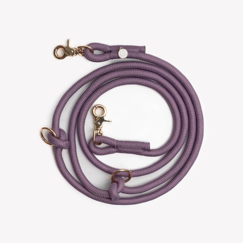 LAISSE MULTIPOSITIONS EN CORDE POUR CHIEN – MAUVE PARME « LILAC »
