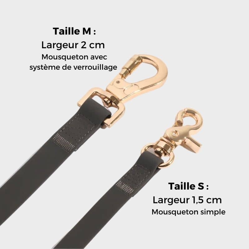 Taille M : largeur 2 cm et mousqueton avec système de verrouillage