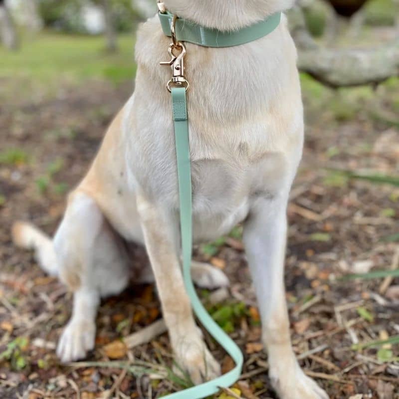 Retrouvez ici toute la collection de produits waterproof en pistache ! (Laisse, collier, harnais ect…)