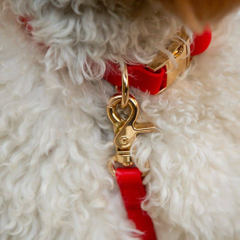 Retrouvez ici toute la collection de produits waterproof en rouge cerise ! (Laisse, collier, laisse multipositions ect…)