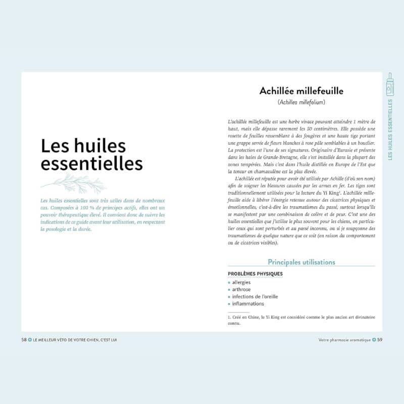 Le livre Le meilleur véto de votre chien, c’est lui par Nayana Morag vous guidera pour aider votre chien à se soigner et à utiliser sa capacité innée à s’orienter vers les plantes médicinales qui peuvent lui faire du bien. Un guide pratique avec des conseils pour vous aider à interpréter ses réactions mais aussi sur comment lui administrer les huiles qu’il aura sélectionnées.