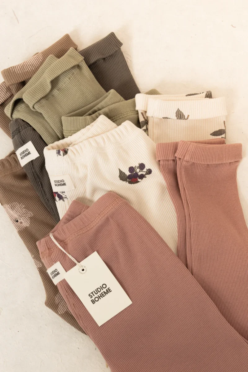 Legging mixte très confortable en jersey côtelé épais de coton biologique.Taille élastiquée et petits revers cousus dans le bas. Etiquette décorative Studio Bohème au dos.Fabriqué au Portugal.