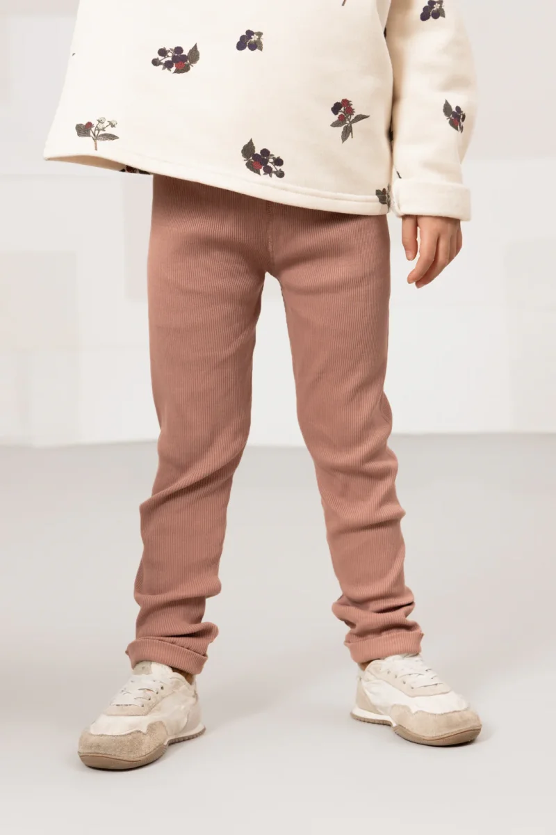 Legging mixte très confortable en jersey côtelé épais de coton biologique.