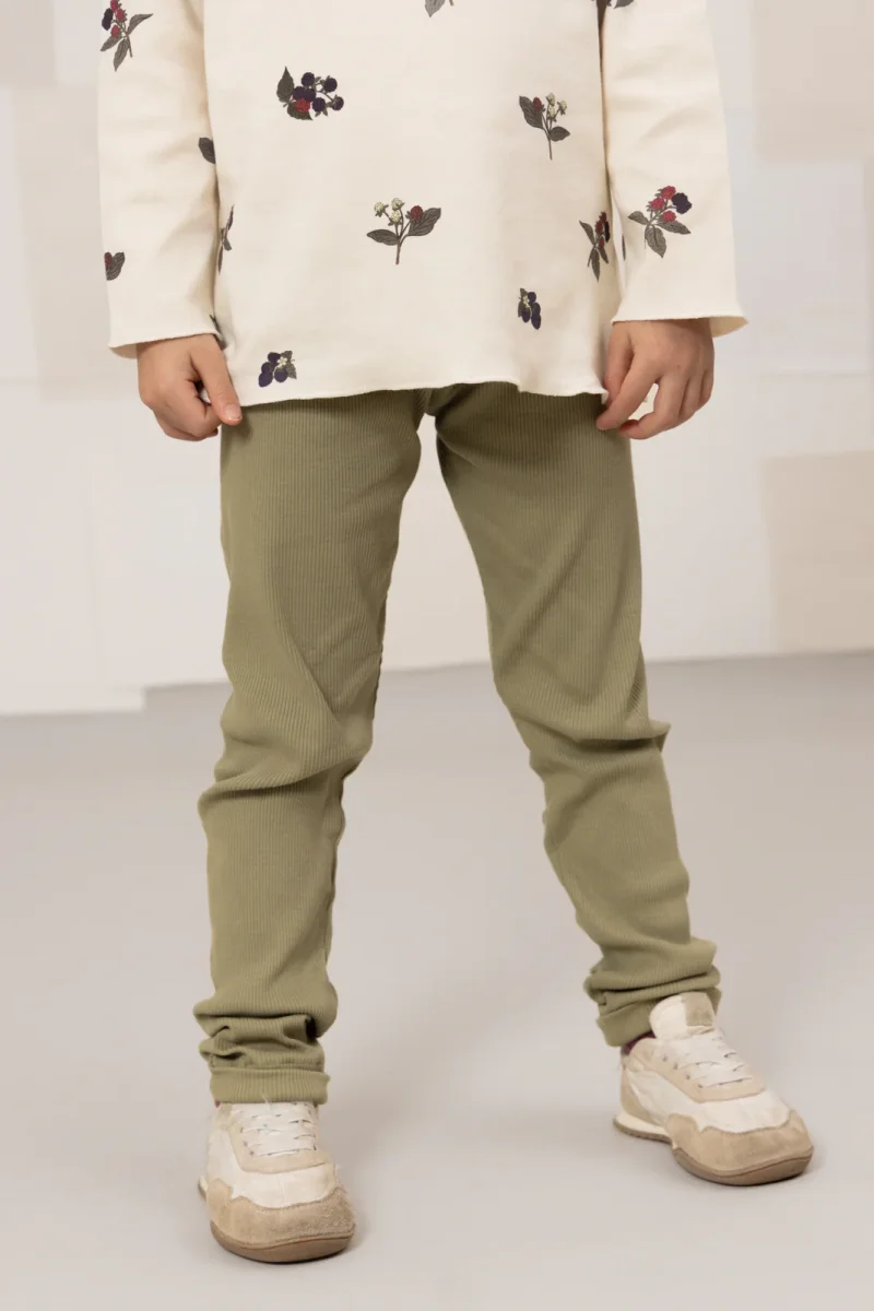 Legging mixte très confortable en jersey côtelé épais de coton biologique.
