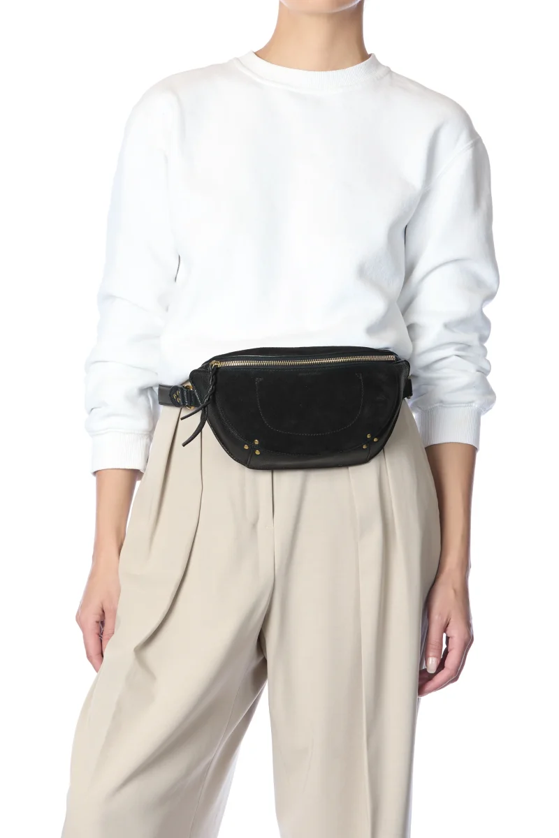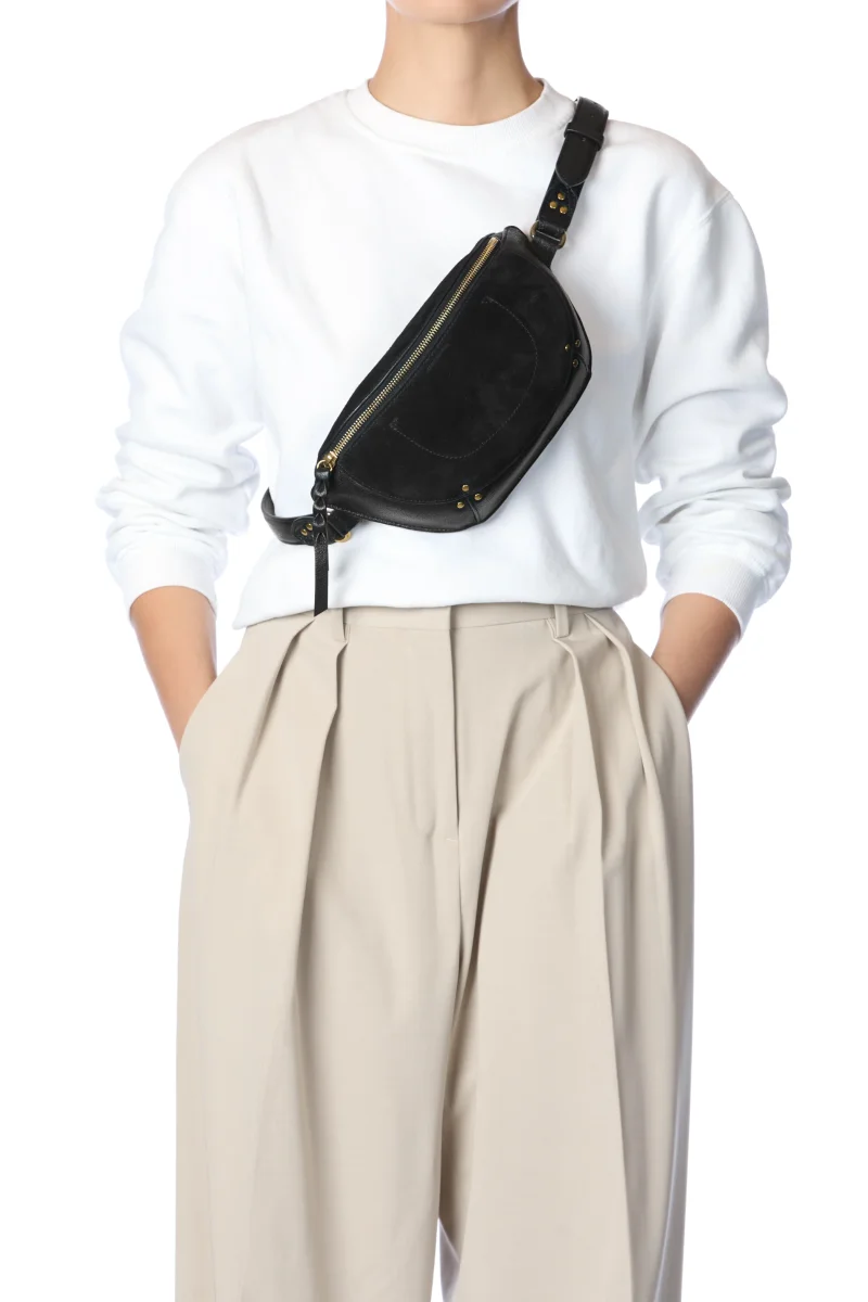 Fermeture zippée sur le haut du sac. Une ceinture ajustable, mesurant au maximum 103 cm. Une poche plaquée intérieure. Une poche extérieure zippée.