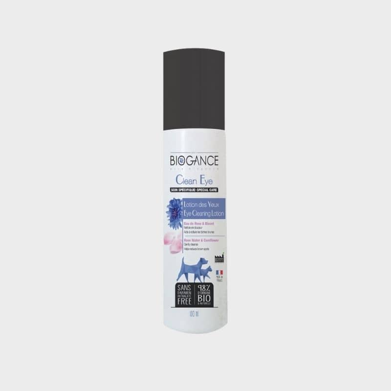 Cette lotion pour les yeux Clean Eye Biogance est formulée à base d’eau de rose et de bleuet pour un nettoyage en douceur du contour des yeux et des muqueuses du chien.