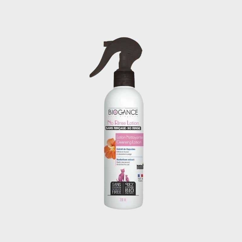 Cette lotion sans rinçage No Rinse Lotion pour chat de Biogance est formulée à base de capucine pour purifier le pelage.