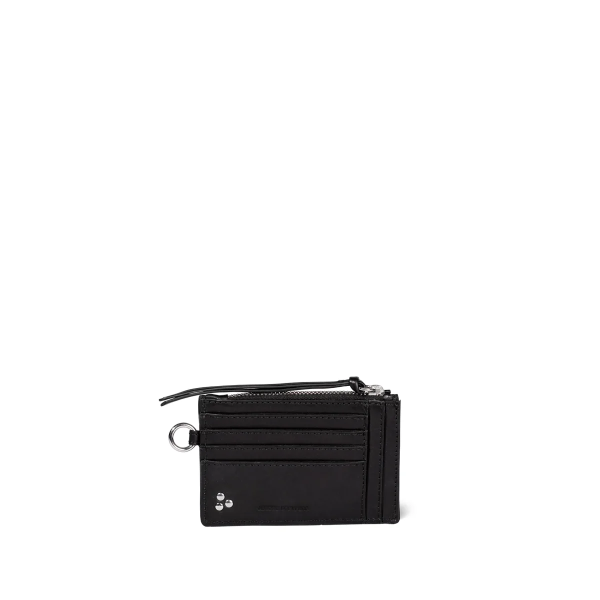 Porte-carte format compact, 7 aménagements pour les cartes. Poche zippée. Anneau pour l’accrocher partout.