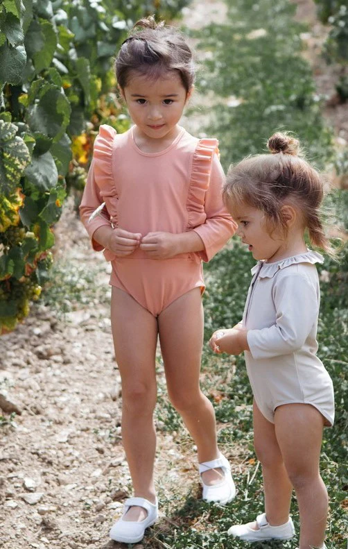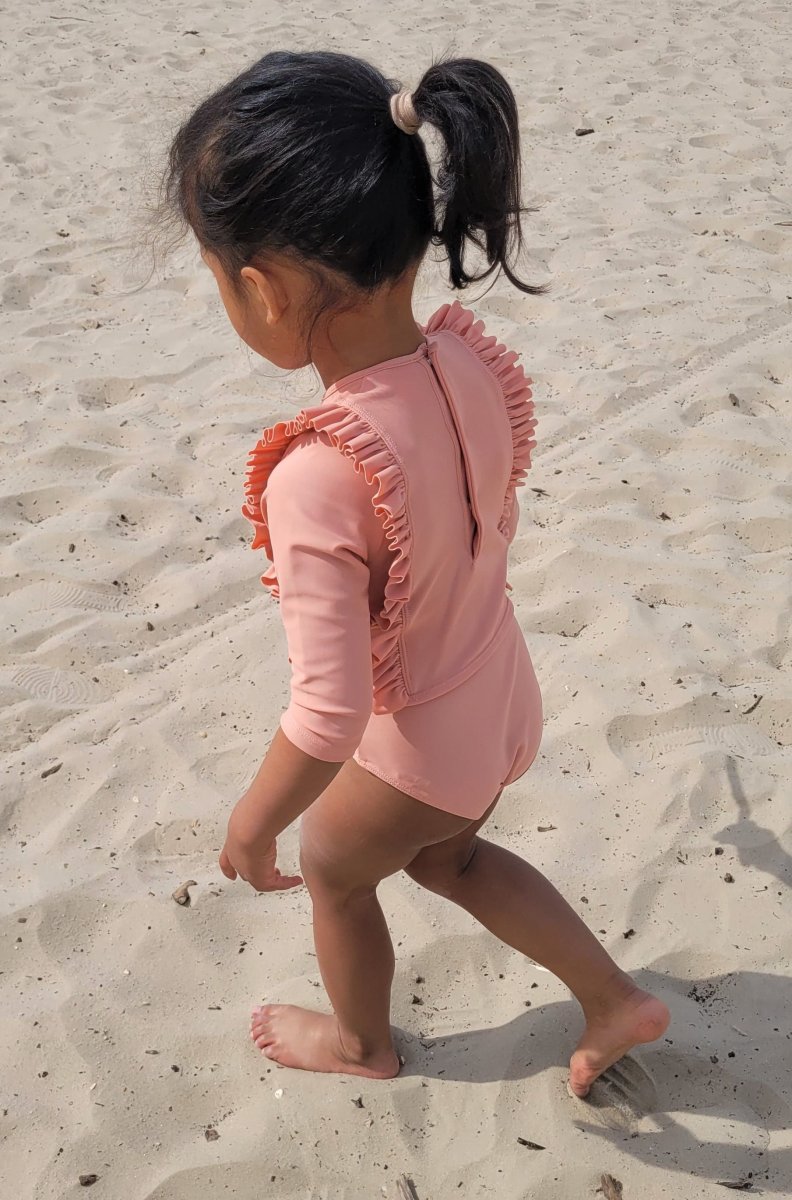Maillot Body anti-UV Roma corail à volants – LES PETITS DORÉS