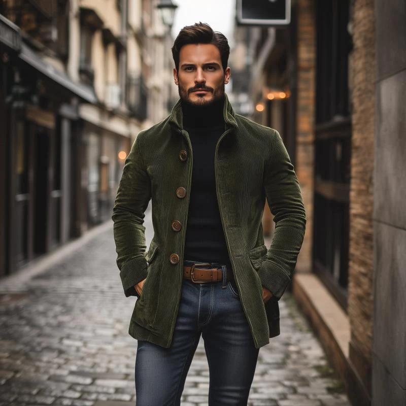 Élevez votre garde-robe avec ce manteau court stylé qui combine parfaitement l’attrait vintage et le design contemporain. Confectionné en velours côtelé de haute qualité, il offre chaleur et confort tout en conservant un style net et sophistiqué. Le col montant ajoute une protection supplémentaire contre le froid tout en accentuant son look moderne. Sa coupe slim épouse le corps pour une silhouette flatteuse, idéale pour les occasions décontractées ou semi-formelles. Les poches latérales pratiques offrent commodité sans sacrifier le style, et la fermeture à simple boutonnage assure une apparence épurée et soignée. Que vous le superposiez à des chemises, des pulls ou des cols roulés, ce manteau est un ajout polyvalent à la collection de tout homme.