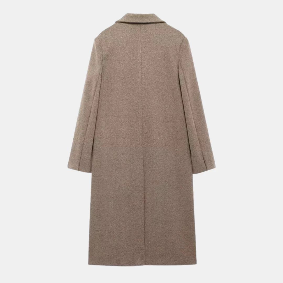 Manteau long croisé sophistiqué en laine taupe pour femme